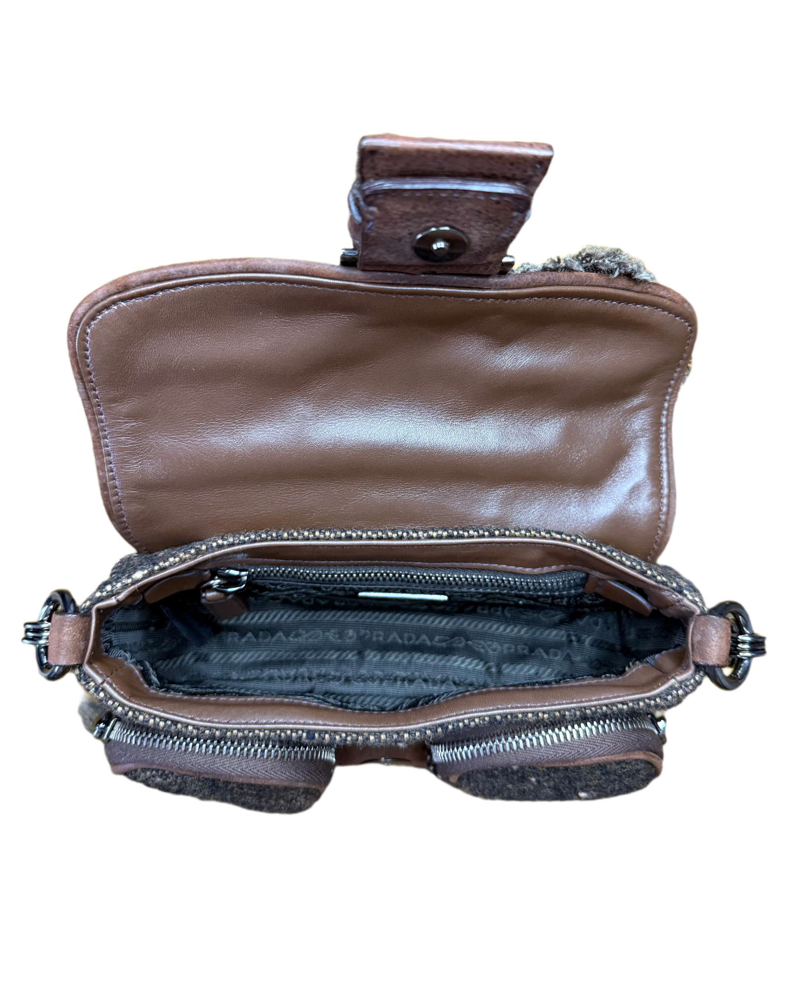 - Material: Piel y tweed